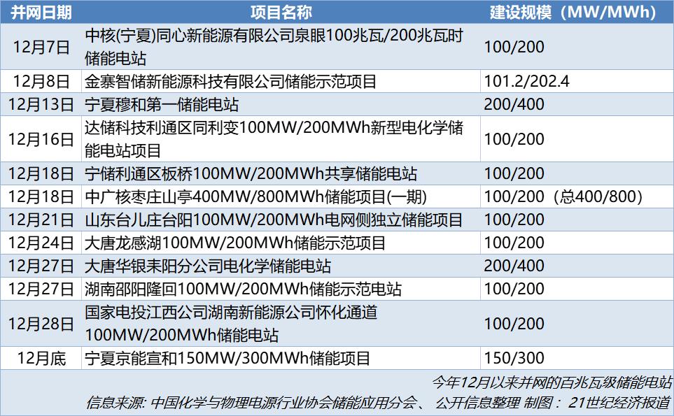 臨近年底,國內(nèi)大型儲能電站迎來一輪集中并網(wǎng)熱潮。