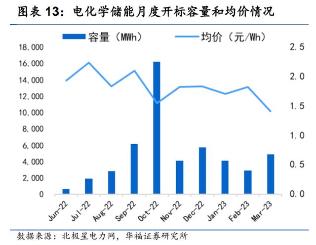 華福證券數(shù)據(jù)顯示,當(dāng)月電化學(xué)儲(chǔ)能項(xiàng)目中標(biāo)均價(jià)僅為1.41元/kWh,同比下降22.53%,其中儲(chǔ)能系統(tǒng)設(shè)備中標(biāo)均價(jià)僅為1.23元/Wh。