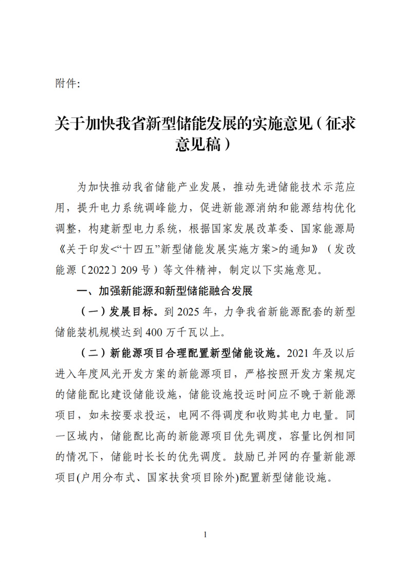 附件: 加快我省新型儲能發(fā)展的實施意見(征求意見稿 )