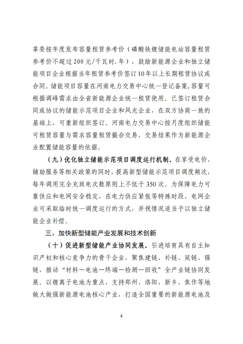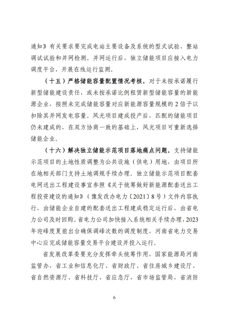 省財政廳、工業(yè)和信息化廳、住房城鄉(xiāng)建設(shè)廳、自然資源廳應(yīng)急廳,省市場監(jiān)管局,省消防總隊,國家能源局河南監(jiān)管辦省電力公司,各省轄市發(fā)展改革委,濟源示范區(qū)發(fā)改統(tǒng)計局,鄭州航空港區(qū)經(jīng)濟發(fā)展局,華能、大唐、華電、國家電投、國家能源河南(分)公司,華潤中西大區(qū)、華晨電力河南公司、省投資集團,中廣核新能源公司,中核匯能,三峽河南公司比亞迪弗迪電池有限公司、開封時代、寧德時代等有關(guān)企業(yè):按照省政府要求,為推動我省新型儲能產(chǎn)業(yè)規(guī)?;哔|(zhì)量發(fā)展,我委研究制定了《加快我省新型儲能發(fā)展的實施意見》現(xiàn)征求貴單位意見,由于時間緊急,請貴單位盡快研究反饋,意見經(jīng)加蓋公章后于4月28日前反饋我委,電子版發(fā)送郵箱hnnyc@163.com,無修改意見也請正式反饋。
