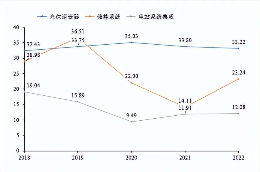 圖表 19:2018-2022年陽光電源主要業(yè)務(wù)毛利趨勢 單位:%