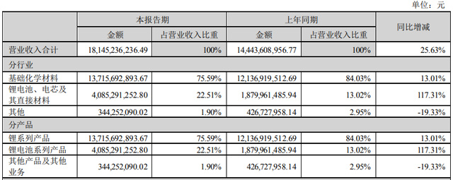 今年上半年,贛鋒鋰業(yè)的鋰電池系列產品營業(yè)收入達到40.85億元,同比增長117.31%,占比首度突破20%達到22.5%,毛利率更是增長了4.14個百分點到19.41%,成為贛鋒鋰業(yè)唯一實現毛利率正增長的業(yè)務。
