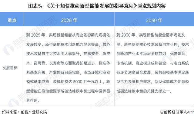 國家發(fā)展改革委、國家能源局聯(lián)合印發(fā)了《關(guān)于加快推動新型儲能發(fā)展的指導(dǎo)意見》,提出到2025年,實現(xiàn)新型儲能從商業(yè)化初期向規(guī)模化發(fā)展轉(zhuǎn)變。新型儲能技術(shù)創(chuàng)新能力顯著提高,核心技術(shù)裝備自主可控水平大幅提升,在高安全、低成本、高可靠、長壽命等方面取得長足進步,標(biāo)準(zhǔn)體系基本完善,產(chǎn)業(yè)體系日趨完備,市場環(huán)境和商業(yè)模式基本成熟,裝機規(guī)模達3000萬千瓦以上。到2030年,實現(xiàn)新型儲能全面市場化發(fā)展。新型儲能核心技術(shù)裝備自主可控,技術(shù)創(chuàng)新和產(chǎn)業(yè)水平穩(wěn)居全球前列,標(biāo)準(zhǔn)體系、市場機制、商業(yè)模式成熟健全,與電力系統(tǒng)各環(huán)節(jié)深度融合發(fā)展,裝機規(guī)?;緷M足新型電力系統(tǒng)相應(yīng)需求。新型儲能在推動能源領(lǐng)域碳達峰、碳中和過程中發(fā)揮顯著作用。新型儲能成為能源領(lǐng)域碳達峰、碳中和的關(guān)鍵支撐之一。