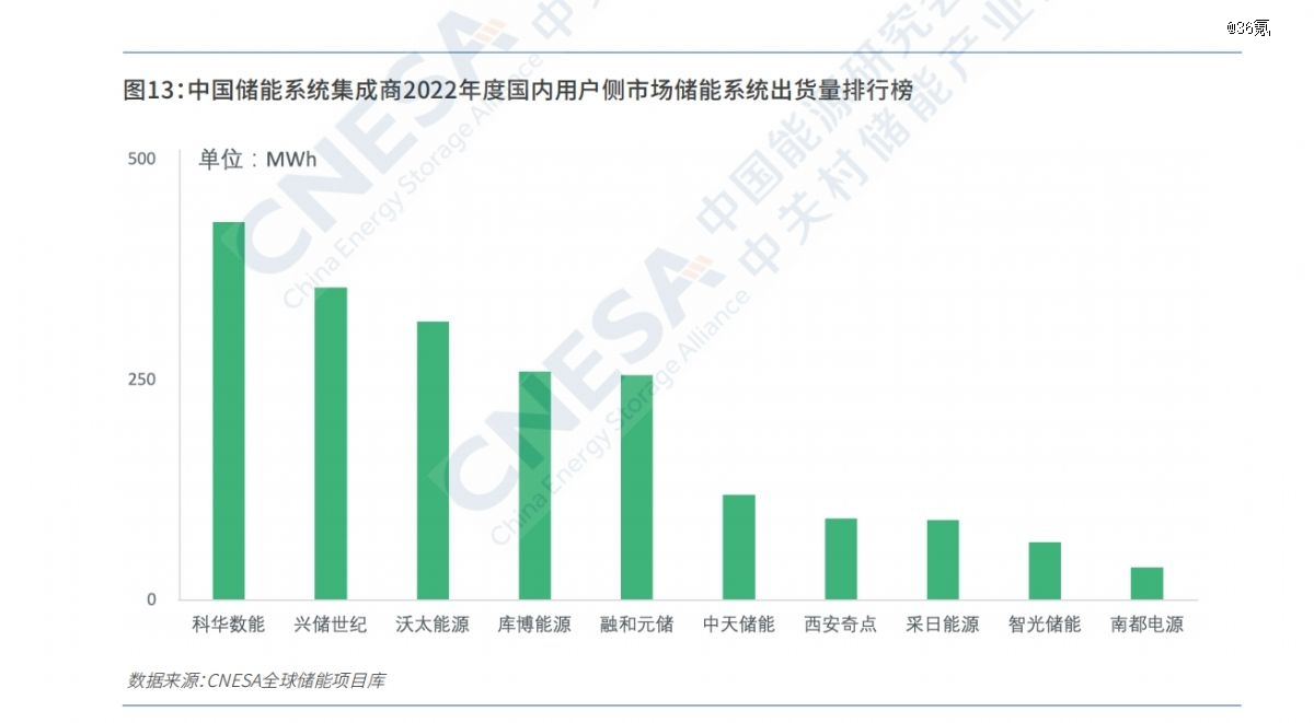 值得一提的是,作為業(yè)內(nèi)權(quán)威機(jī)構(gòu),中關(guān)村儲能產(chǎn)業(yè)技術(shù)聯(lián)盟(CNESA)曾對2022年國內(nèi)用戶側(cè)市場上儲能系統(tǒng)出貨量前十位做過排名,科華數(shù)能、興儲世紀(jì)、沃太能源位居前三位。