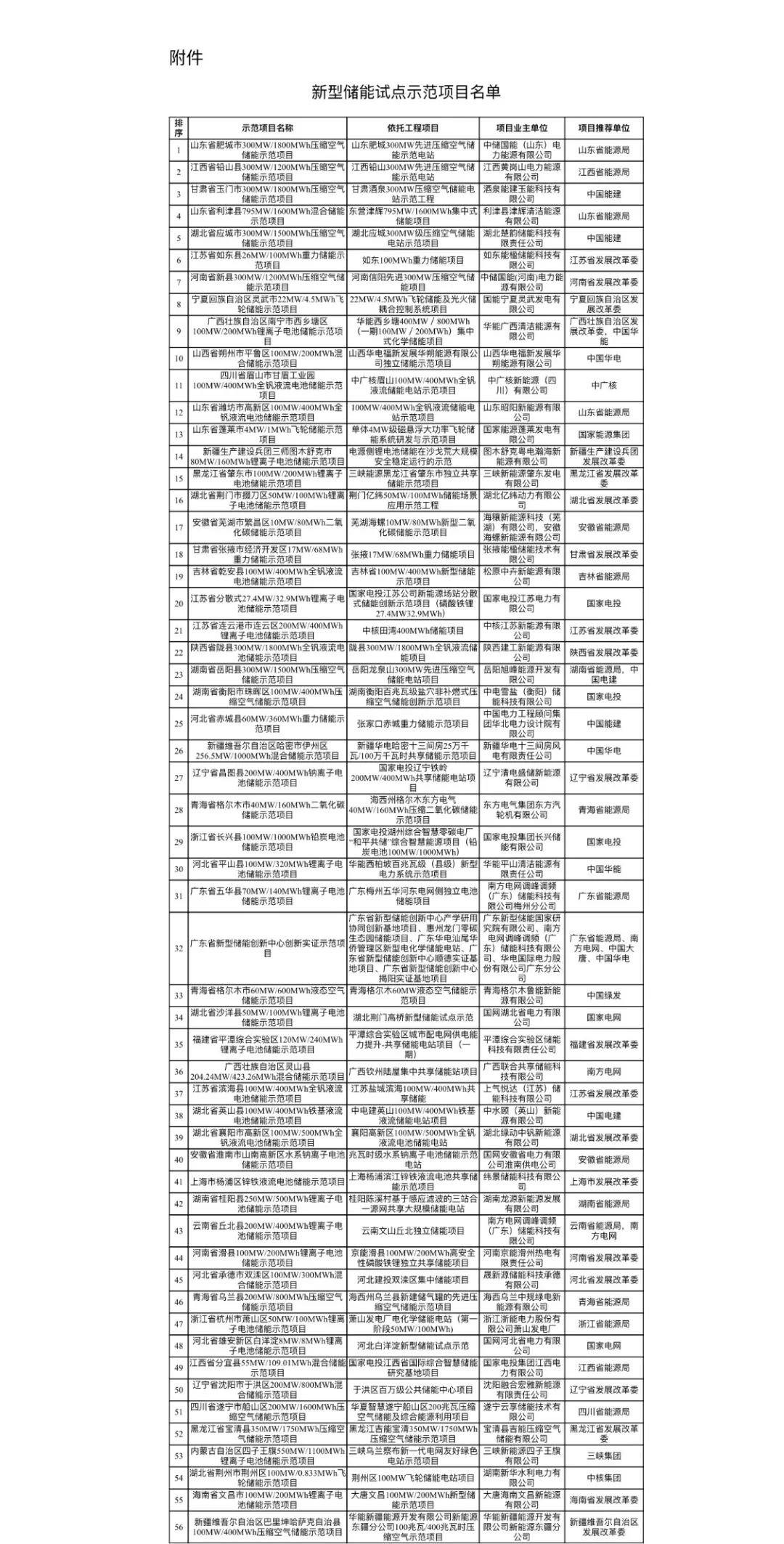 一、經(jīng)項目單位申報,有關(guān)省級能源主管部門和中央企業(yè)匯總推薦,國家能源局組織專家評審,并公示征求各方面意見,決定將“山東省肥城市300MW/1800MWh壓縮空氣儲能示范項目”等56個項目列為新型儲能試點(diǎn)示范項目。