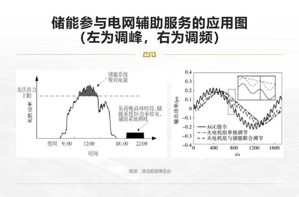 在電網(wǎng)側(cè),為電力系統(tǒng)提供調(diào)峰、調(diào)頻等輔助服務。例如調(diào)頻,頻率的變化會對發(fā)電及用電設備的安全高效運行及壽命產(chǎn)生影響,儲能(特別是電化學儲能)調(diào)頻速度快,可靈活地在充放電狀態(tài)之間轉(zhuǎn)換。