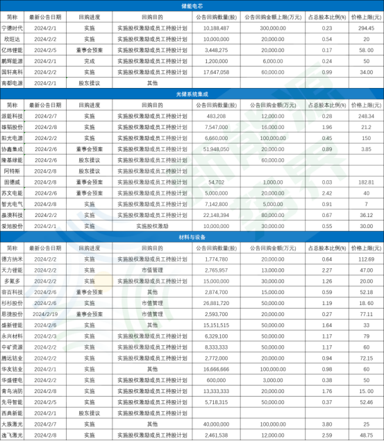 2024年儲能相關(guān)企業(yè)股份回購情況一覽