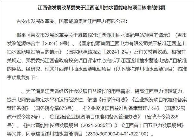 總投資高達(dá)77.4億元 江西遂川抽水蓄能電站項目喜獲批準(zhǔn)