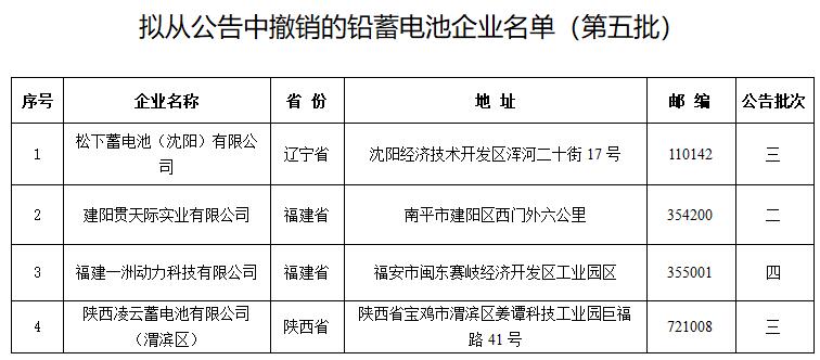 2.擬從公告中撤銷的鉛蓄電池企業(yè)名單(第五批)