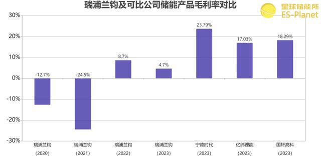 這放在過去幾年“賠本賺吆喝”的瑞浦蘭鈞身上并不奇怪,2020—2023年,瑞浦蘭鈞儲(chǔ)能電池產(chǎn)品毛利率分別為-12.7%、-24.5%、8.7%、4.7%。