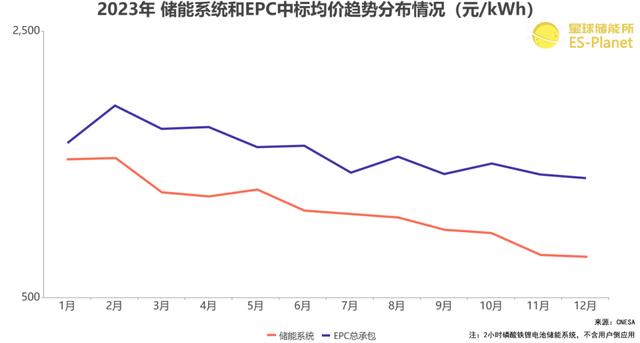 ※ 圖表:2023年儲(chǔ)能系統(tǒng)及EPC中標(biāo)均價(jià)