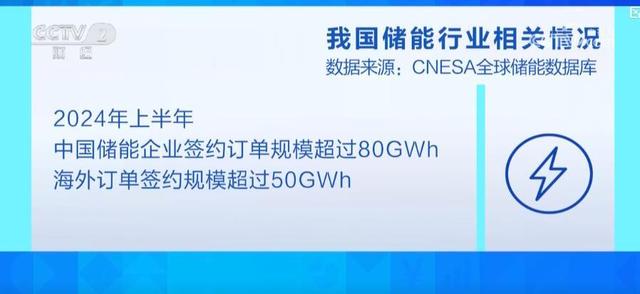 除了戶用儲能領域,海外大型儲能項目今年也表現亮眼。據CNESA全球儲能數據庫不完全統(tǒng)計,2024年上半年,中國儲能企業(yè)簽約訂單規(guī)模超過80GWh,其中海外訂單簽約規(guī)模超過50GWh。
