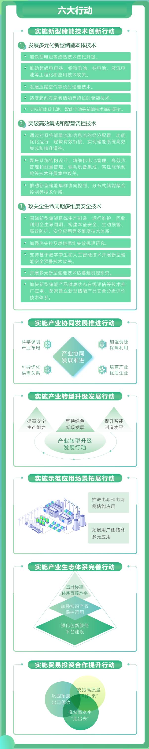 記者注意到,《方案》共提出實施新型儲能技術(shù)創(chuàng)新行動、實施產(chǎn)業(yè)協(xié)同發(fā)展推進行動、實施產(chǎn)業(yè)轉(zhuǎn)型升級發(fā)展行動、實施示范應用場景拓展行動、實施產(chǎn)業(yè)生態(tài)體系完善行動、實施貿(mào)易投資合作提升行動等六大行動。