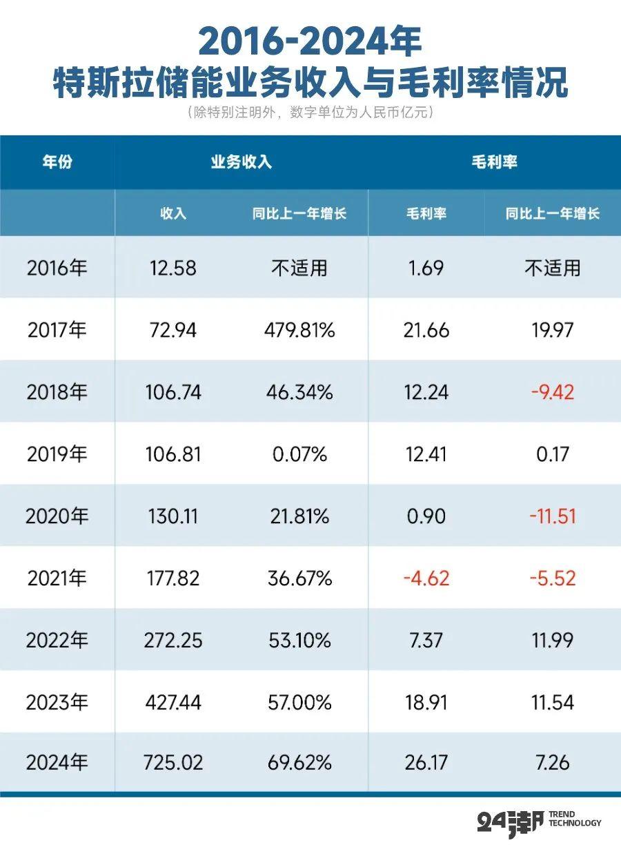但看到特斯拉年報,儲能系統(tǒng)業(yè)務(wù)快速增長,營收毛利率雙提升。特斯拉在海外儲能需求增長的爆發(fā)同時,又吃到了國內(nèi)電芯供應(yīng)商內(nèi)卷的紅利,降本增收,所以儲能業(yè)務(wù)毛利率甚至超過汽車業(yè)務(wù),特斯拉2024年全年儲能業(yè)務(wù)26億美元的毛利潤,這下賣電池還比電池+車還賺錢了。