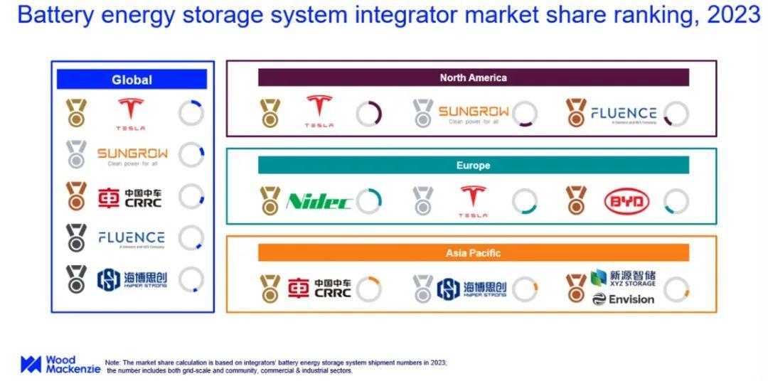 目前中國儲能裝機量最高,幾乎占到全球的近一半,畢竟是電力系統(tǒng)最發(fā)達的國家,但是量大沒用,國內(nèi)業(yè)務(wù)其實不怎么賺錢,一個是聯(lián)動壓價,光伏配儲能,光伏低迷,儲能預(yù)算跟光伏成本聯(lián)動,集成系統(tǒng)就不賺錢,因此電芯也別指望賺錢,而集成系統(tǒng)的集中度較低,有很多國企參與競爭,比如中車株洲是目前市占率第一,這種情況下,面向國內(nèi)的集成系統(tǒng)變成了差生意,跟特斯拉形成劇烈的對比。