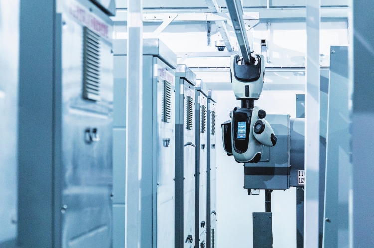 在深圳110千伏投控變電站,吊軌機(jī)器人對(duì)GIS設(shè)備進(jìn)行紅外測(cè)溫。黃志偉 攝