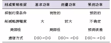 文獻[6]在結(jié)合文獻[5]研究成果的基礎(chǔ)上,描述了如何在規(guī)劃之中考慮不同的動態(tài)削減發(fā)電出力方法。不同削減策略的比較如表1所示,文中利用測量功率和短期預(yù)測功率來削減DG發(fā)電出力,證明了在簡單地削減DG發(fā)電出力的情形下,很容易保證電網(wǎng)運行的可靠性,即故障發(fā)生前就可以被修復(fù)。在分布式能源提供更多系統(tǒng)服務(wù)(如電壓平衡、無功補償?shù)龋┑膹?fù)雜主動配電系統(tǒng)區(qū)域內(nèi),則必須采用短期預(yù)測技術(shù)。