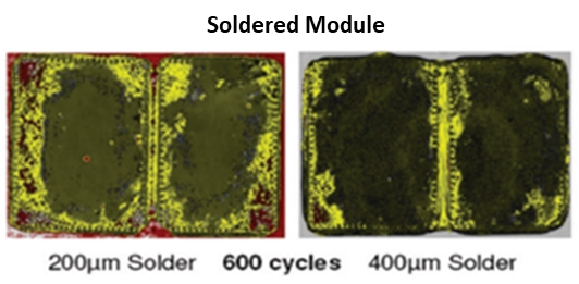 有關(guān)于同工況下,使用芯片下及系統(tǒng)級(jí)燒結(jié)銀連接方案,將會(huì)比單單在芯片下使用燒結(jié)銀方案,系統(tǒng)溫度將下降約10℃。比全軟焊料解決方案下降更多,能達(dá)到約20℃的顯著效果。