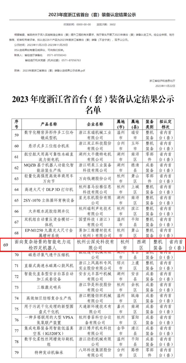 云深處電力四足機器人入選浙江省首臺(套)裝備