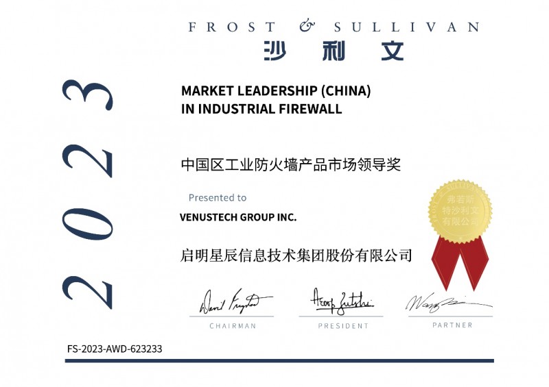 本網(wǎng)訊 近日,弗若斯特沙利文(Frost & Sullivan,以下簡稱“沙利文”)正式發(fā)布2023年中國工業(yè)防火墻市場(chǎng)排名,啟明星辰集團(tuán)工業(yè)防火墻以36.7%的市場(chǎng)份額雄踞榜首,并再次榮獲“2023年度中國區(qū)工業(yè)防火墻產(chǎn)品市場(chǎng)領(lǐng)導(dǎo)獎(jiǎng)”。至此,啟明星辰集團(tuán)已連續(xù)六年領(lǐng)跑中國工業(yè)防火墻市場(chǎng)。