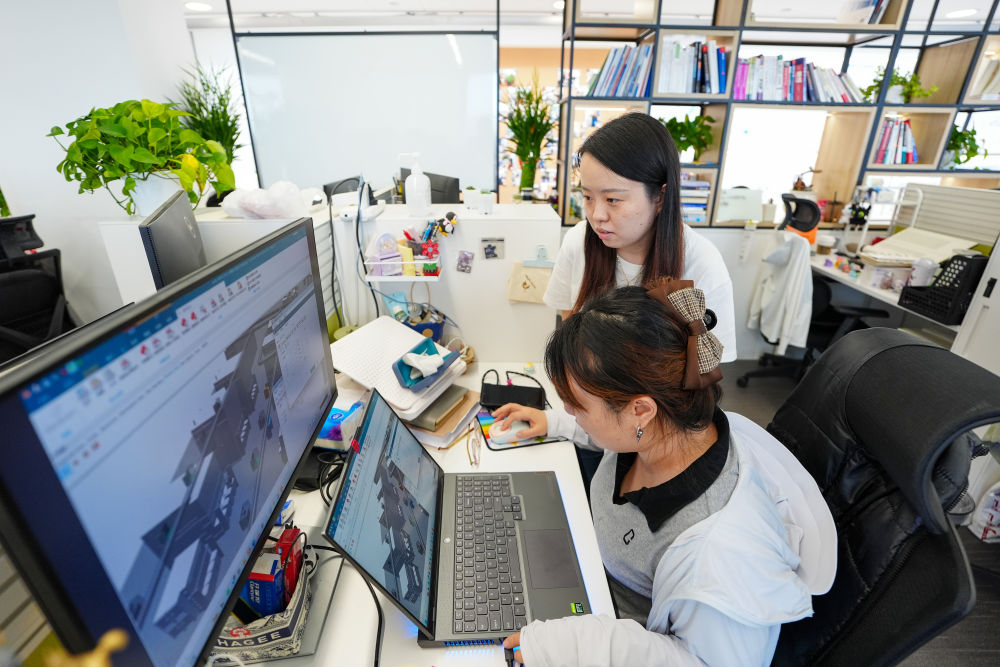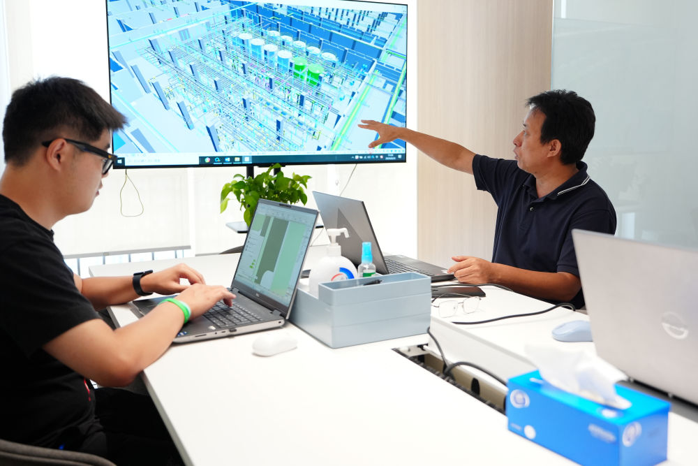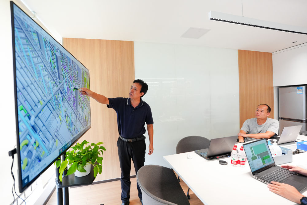2024年8月26日,中國電子院工作人員在討論某先進半導(dǎo)體項目物流仿真方案