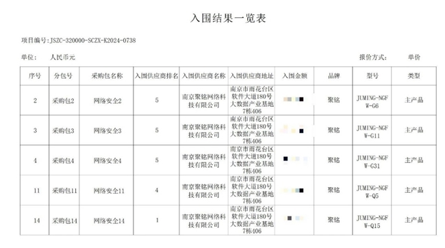 本網(wǎng)訊 近日,2025年度江蘇省黨政機關(guān)、事業(yè)單位及團(tuán)體組織信息安全設(shè)備框架協(xié)議采購項目入圍結(jié)果公布。聚銘網(wǎng)絡(luò)憑借自身專業(yè)實力和技術(shù)優(yōu)勢脫穎而出,成功入圍22個分包。