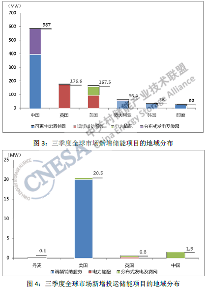 2016年三季度,中國(guó)新增投運(yùn)項(xiàng)目3個(gè),裝機(jī)規(guī)模1.5MW,同比增長(zhǎng)50%,環(huán)比今年二季度下降了87%。項(xiàng)目全部集中在分布式發(fā)電及微網(wǎng)領(lǐng)域。