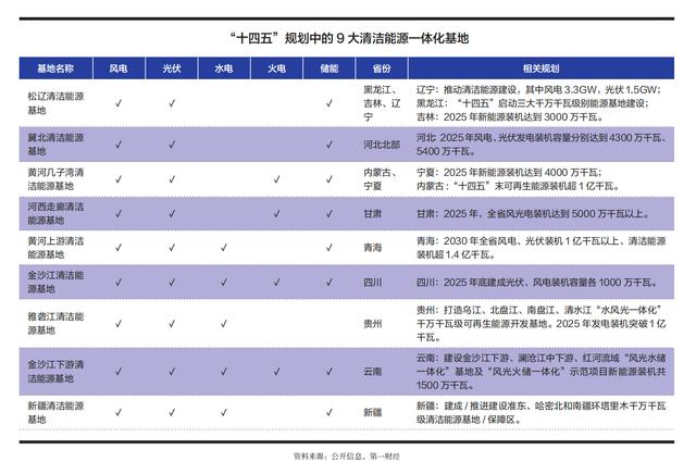 清潔能源一體化大基地旨在持續(xù)加強(qiáng)新能源電力消納和跨區(qū)輸送能力建設(shè),有序推進(jìn)風(fēng)電、光伏發(fā)電的集中式開(kāi)發(fā),積極推進(jìn)多能互補(bǔ)的清潔能源基地建設(shè)。