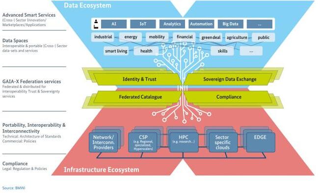 目前,德國和法國已成為眼下歐盟地區(qū)云計(jì)算項(xiàng)目的領(lǐng)導(dǎo)者,由兩國牽頭的Gaia-X 項(xiàng)目,便致力于建立一個(gè)真正屬于歐洲的數(shù)據(jù)基礎(chǔ)設(shè)施,即歐盟的“母云端”。這個(gè)項(xiàng)目的目標(biāo)是實(shí)現(xiàn)數(shù)據(jù)的互操作性,從而促進(jìn)數(shù)據(jù)的自由流動(dòng)和共享。該項(xiàng)目對(duì)于歐洲的云計(jì)算發(fā)展有著重要的影響,將進(jìn)一步促進(jìn)了歐洲各國之間的云計(jì)算合作,推動(dòng)了這個(gè)地區(qū)的云計(jì)算技術(shù)的發(fā)展。
