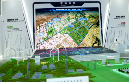 在展示區(qū)中心位置擺放的東數(shù)西算產(chǎn)業(yè)園區(qū)模擬沙盤上,一個個風(fēng)力發(fā)電機和光伏發(fā)電基地格外吸引眼球,通過一座座銀色電網(wǎng)鐵塔與產(chǎn)業(yè)園區(qū)緊密相連,為園區(qū)產(chǎn)業(yè)發(fā)展提供源源不斷地清潔電力能源。同時,墻上的電子屏幕滾動播放著“數(shù)字經(jīng)濟(jì)招商企業(yè)一覽表”,顯示已有53家企業(yè)簽約。