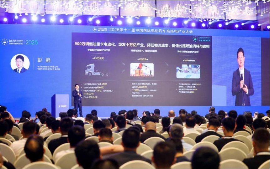 會議期間,華為智能充電網(wǎng)絡(luò)全球業(yè)務(wù)副總裁彭鵬受邀發(fā)表《兆瓦超充技術(shù)加速商用車電動化進(jìn)程》主題演講。依托華為數(shù)字能源在充電網(wǎng)絡(luò)產(chǎn)業(yè)的深入研判,系統(tǒng)預(yù)測以重卡物流為代表的新一波汽車電動化浪潮下,構(gòu)建交能融合型充電基礎(chǔ)設(shè)施是未來高質(zhì)量發(fā)展的關(guān)鍵。2025年開始電動重卡將憑借購置運營成本及減排效果迎來長達(dá)十年以上強(qiáng)勁的市場表現(xiàn),華為兆瓦超充可徹底打通產(chǎn)業(yè)斷點,以車型高兼容、運營易維護(hù)、建站省占地等多重優(yōu)勢,全面領(lǐng)先換電等技術(shù)路線。