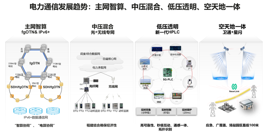 新型電力系統(tǒng)下,通信目標(biāo)網(wǎng)呈現(xiàn)四大特征:主網(wǎng)智算、中壓混合、低壓透明、空天地一體。主網(wǎng)智算需要考慮的是包括以東數(shù)西算為代表的光跑電不跑,以邊緣計(jì)算為代表的電跑光不跑,以及結(jié)合時(shí)空特性,來(lái)助力解決新能源消納和削峰填谷;近期臺(tái)風(fēng)應(yīng)急帶給我們的啟發(fā)是,10kV通信網(wǎng)是電網(wǎng)通信目前最薄弱的環(huán)節(jié),是典型的“盲區(qū)”。這需要體系性規(guī)劃以光纖+無(wú)線專網(wǎng)的通信目標(biāo)網(wǎng),也要輔之以空天地一體的應(yīng)急和廣覆蓋能力;隨著海量的分布式光伏接入、充電樁接入、分布式儲(chǔ)能接入、用戶互動(dòng)及潛在的負(fù)荷側(cè)交易,這需要體系性思考支撐400V低壓透明的通信需求。