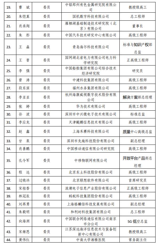 附件:第一屆工業(yè)和信息化部物聯(lián)網(wǎng)標(biāo)準(zhǔn)化技術(shù)委員會委員名單