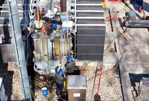 國(guó)網(wǎng)商丘供電公司充分利用秋檢時(shí)機(jī),集中技術(shù)力量,加強(qiáng)對(duì)設(shè)備開(kāi)展大修、技改、維護(hù)工作,確保設(shè)備安全穩(wěn)定運(yùn)行。圖為10月31日,該公司人員在110千伏宋城變電站開(kāi)展檢修施工。(王輝 趙沖)
