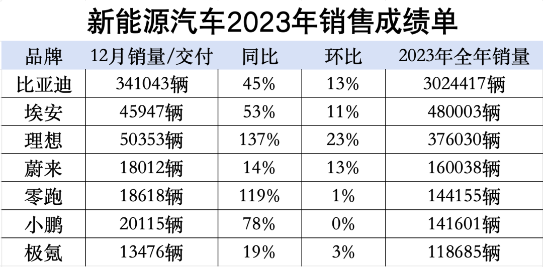 不少新能源車企都取得了不俗的成績,其中,比亞迪銷量穩(wěn)坐頭把交椅,不僅超額完成2023年銷量目標,還同時突破300萬輛年銷量紀錄。