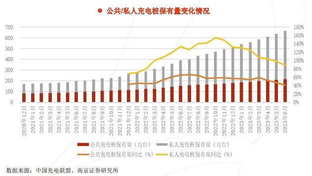 以2023年為例,在新增的充電樁中,私人充電樁的規(guī)模遠(yuǎn)比公用充電樁大,前者約是后者的2.6倍。而私人充電樁是隨車配建的,也就是說,新增充電樁的車樁比雖然已經(jīng)接近1:1,但其中有七成多是私人充電樁,不對(duì)外開放。