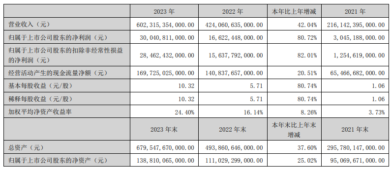 3月26日晚,比亞迪披露2023年年報(bào)。報(bào)告期內(nèi),比亞迪實(shí)現(xiàn)營業(yè)收入6023.15億元,同比增長42.04%;實(shí)現(xiàn)歸母凈利潤300.41億元,同比增長80.72%,經(jīng)營性現(xiàn)金流凈額1697.25億元,均創(chuàng)歷史新高。
