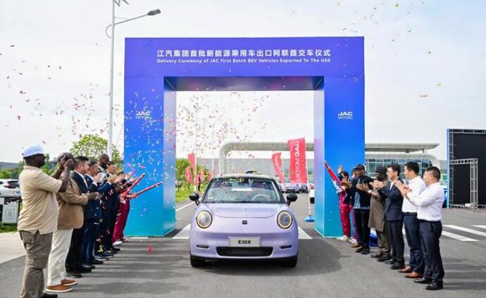 5月22日,首批釔為3出口阿聯(lián)酋交車儀式在江淮釔為智慧工廠舉行。