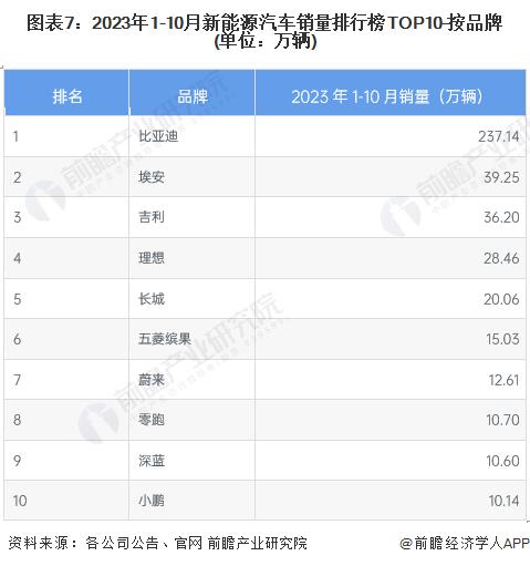 從銷量方面來(lái)看,2023年1至10月,我國(guó)新能源汽車銷量第一名的品牌為比亞迪,以237.14萬(wàn)輛遙遙領(lǐng)先全行業(yè)。第二名為廣汽埃安,銷量為39.25萬(wàn)輛;第三名為吉利汽車,銷量為36.20萬(wàn)輛。造車新勢(shì)力三大車企中,理想排名第四,銷量為28.46萬(wàn)萬(wàn)輛,小鵬排名第十,銷量為10.14萬(wàn)輛,蔚來(lái)排名七,銷量為12.61萬(wàn)輛。總體來(lái)看,2023年1至10月,傳統(tǒng)車企新能源汽車銷量總體好于造車新勢(shì)力。
