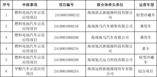 海南省工業(yè)和信息化廳關(guān)于公布海南省第一批(2023-2024年)燃料電池汽車等技術(shù)示范應(yīng)用項目的通告