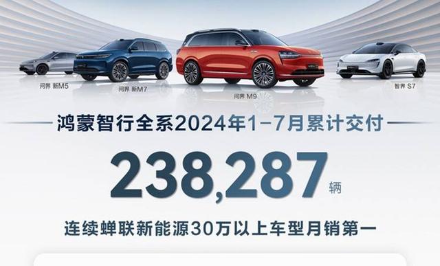 鴻蒙智行在7月交付了44,090輛新車,相比6月有小幅下滑。其中,問界M9勢頭依舊強(qiáng)勁,7月共交付了18,047輛,問界M7交付了16,562輛,問界M5交付了6,926輛,智界S7則交付了2,555輛。今年1-7月,鴻蒙智行累計(jì)交付量為238,287輛。