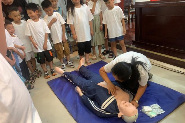 公司講師還帶領孩子們學習了心肺復蘇和海姆立克急救法,仔細講解操作步驟和注意事項,并通過實際操作和練習,使孩子們掌握急救知識,認識到緊急情況下保持冷靜和快速反應的重要性。