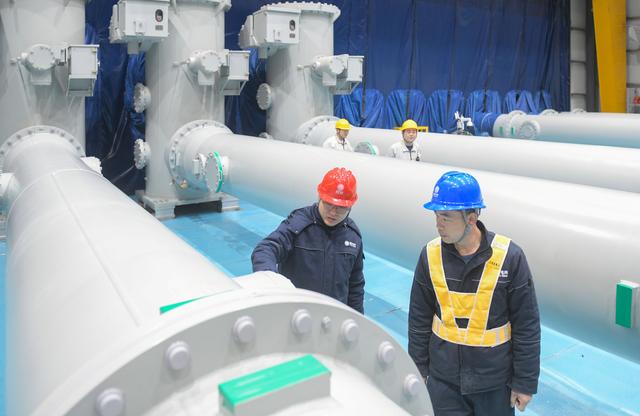 2024年1月30日,川渝特高壓交流工程1000千伏銅梁變電站,國(guó)網(wǎng)重慶市電力公司施工管理人員在1000千伏GIS移動(dòng)無(wú)塵裝配車間進(jìn)行氣室壓力檢查。記者 張錦輝 攝/視覺(jué)重慶