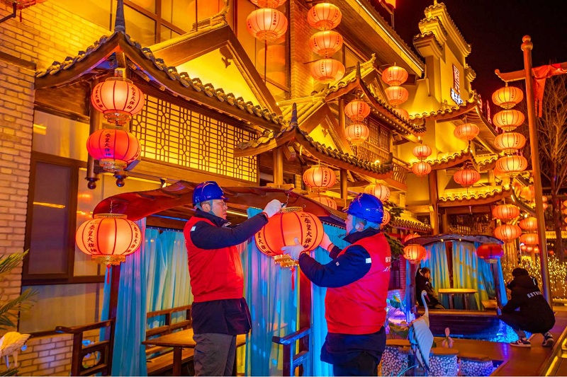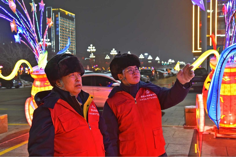 國網(wǎng)新疆奎屯供電公司員工對烏蘇市九蓮泉廣場花燈用電情況進行檢查。