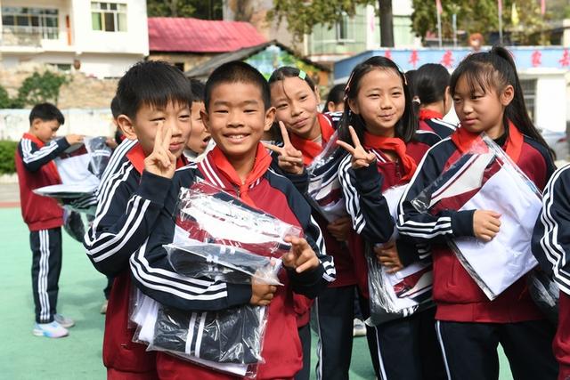 洛麥小學(xué)學(xué)生都領(lǐng)到了自己的新校服。龍定錦攝