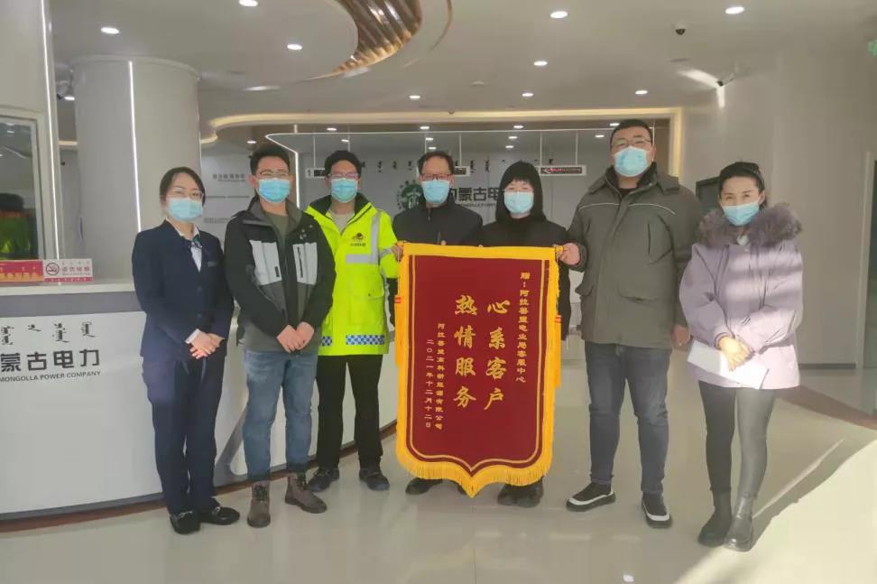 12月13日,內蒙古高科新能源有限公司分散式風力發(fā)電項目并網(wǎng)用電負責人將一面寫有“心系客戶 熱情服務”的錦旗送到客戶服務中心。