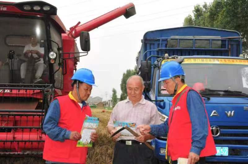 在沁陽(yáng)市道口村的小麥搶收現(xiàn)場(chǎng),共產(chǎn)黨員服務(wù)隊(duì)員深入田間地頭,向廣大農(nóng)民朋友和收割機(jī)駕駛員發(fā)放電力設(shè)施保護(hù)宣傳資料,提高群眾安全用電和電力設(shè)施保護(hù)意識(shí)。