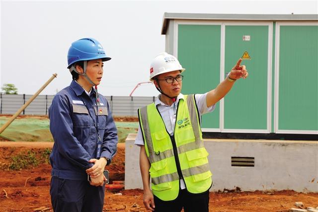南方電網(wǎng)海南電網(wǎng)公司客戶經(jīng)理到海南醫(yī)學(xué)院桂林洋校區(qū)一期項(xiàng)目施工現(xiàn)場走訪。楊永光 攝