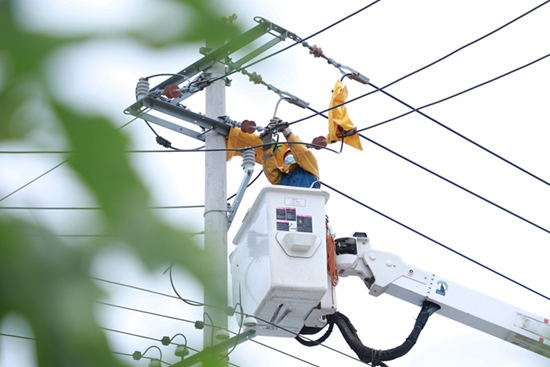 中國電力網(wǎng)訊 5月11日,在濰坊壽光市圣城街道,國網(wǎng)壽光市供電公司帶電作業(yè)人員對10千伏西玉線增玉支線003號、004號桿實施帶電作業(yè),為某養(yǎng)殖企業(yè)新上變壓器帶電T接引線,保障企業(yè)客戶電力供應(yīng)可靠穩(wěn)定。