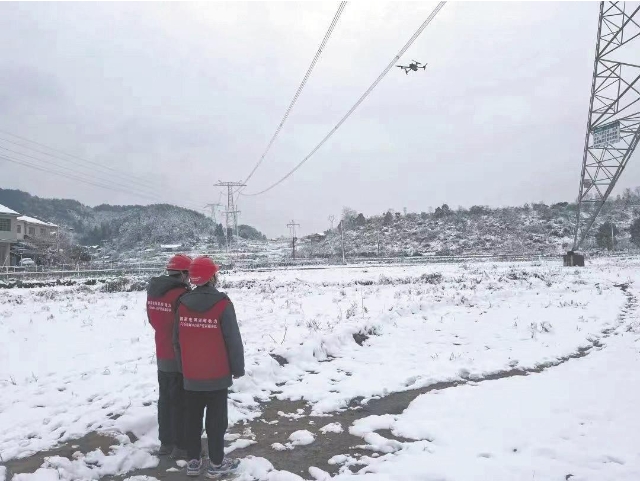 國網湖南電力員工開展無人機自適應巡檢,完成防凍融冰保電工作任務。國網湖南電力供圖